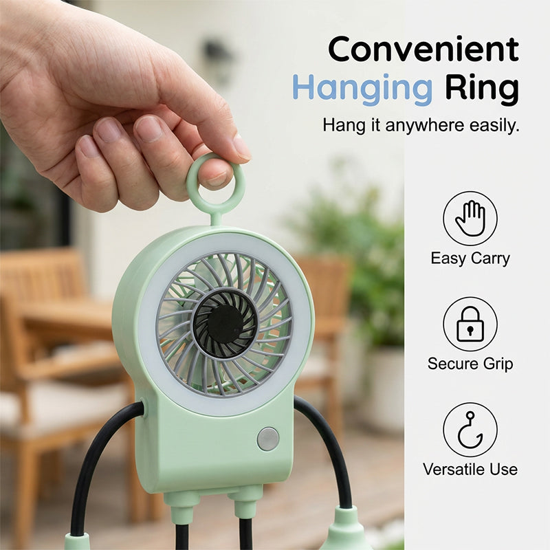 Designed with a top hanging ring, this lightweight fan can be easily suspended in tents, on hooks, or inside your car for versatile cooling.