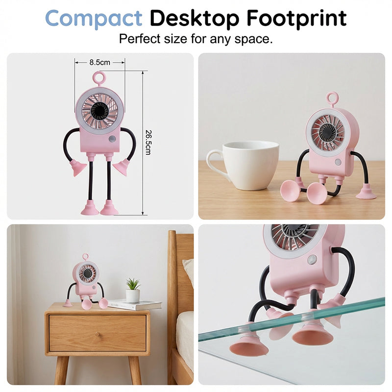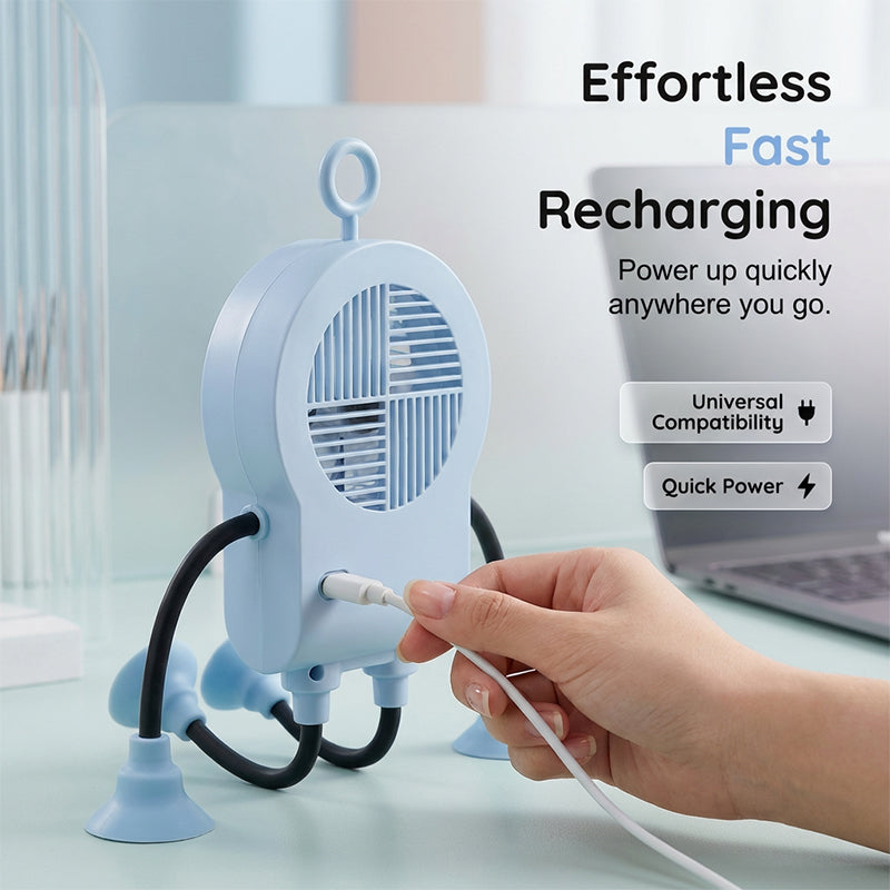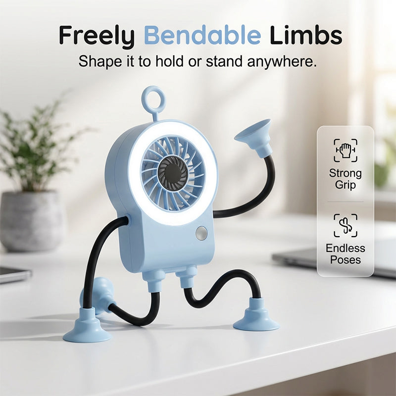 The freely bendable limbs feature strong suction cups, allowing this adorable fan to securely grip smooth surfaces, act as a phone stand, or adapt to any creative angle.